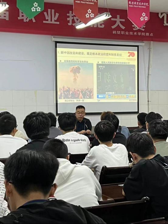 乔建华书记首先讲述了新中国在中国共产党的领导下从站起来、富起来到强起来的历史进程。然后从坚定理想信念,深入学习领会习近平新时代中国特色社会主义思想;勤学苦练技能,为技能出彩技能报国奠定坚实基础;提高综合素质,为未来干事创业提质赋能等三个方面,勉励中外合作办学项目的同学们为强国复兴,贡献青春力量。