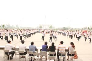 为了牢固树立“健康第一”的指导思想,切实有效地增强员工体质,培养员工争先创优的团队精神;丰富员工课间活动,展现公司员工精神风貌,提高员工广播操质量;确保员工每天1小时体育活动时间的落实和体育锻炼习惯的养成, 6月6日利用第7、8节课时间,进行了“机电工程公司首届广播操比赛”。比赛进行现场打分,评比不仅对做操质量提出了要求,同时对队伍的进退场、服装和精神面貌也做了相应的要求,评委老师从进出场、服装、做操和精神面貌等五方面进行综合评价。
